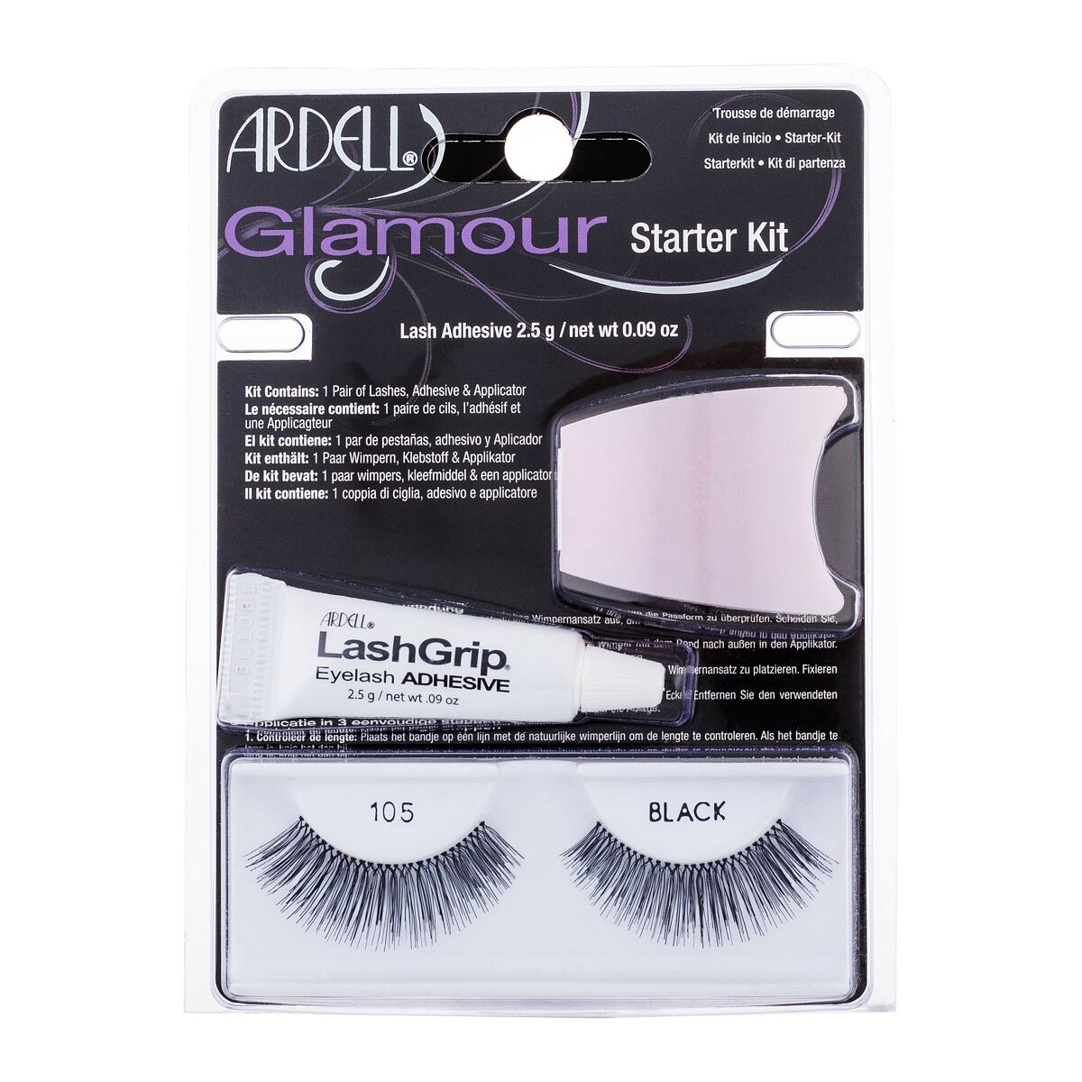 Ardell Glamour 105 Farbton Black Geschenkset: Falsche Wimpern Glamour 1 Paar + Wimpernkleber LashGrip 2,5 g + Applikator 1 St