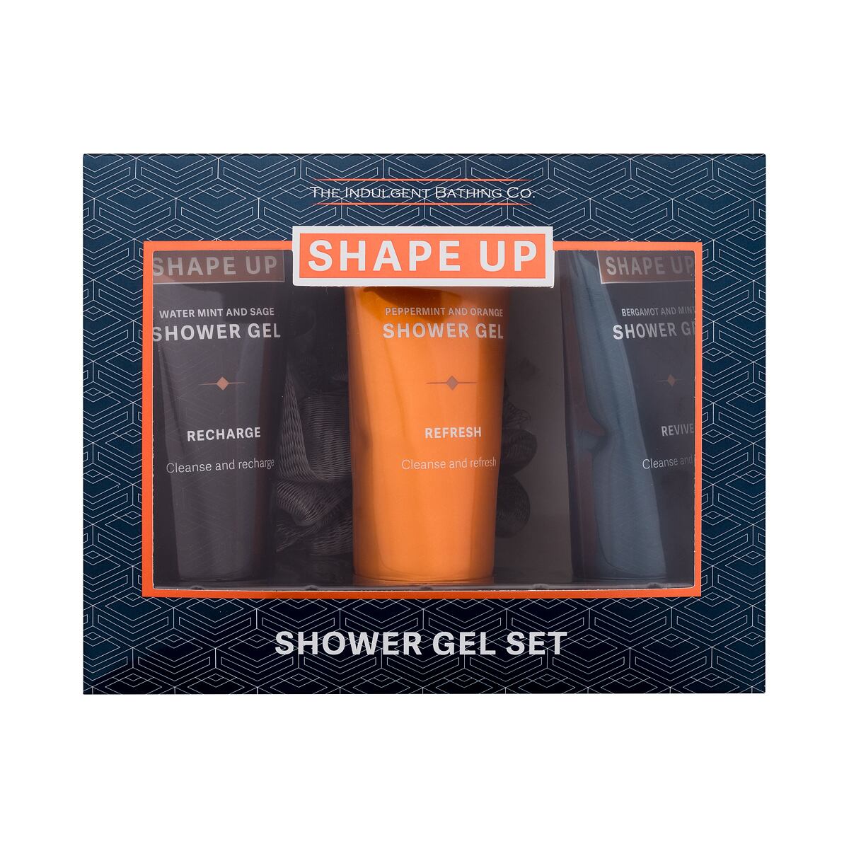 Xpel Shape Up Shower Gel Set Geschenkset: Duschgel Bergamot & Mint 100 ml + Duschgel Peppermint & Orange 100 ml + Duschgel Water Mint & Sage 100 ml + Waschschwamm für Männer